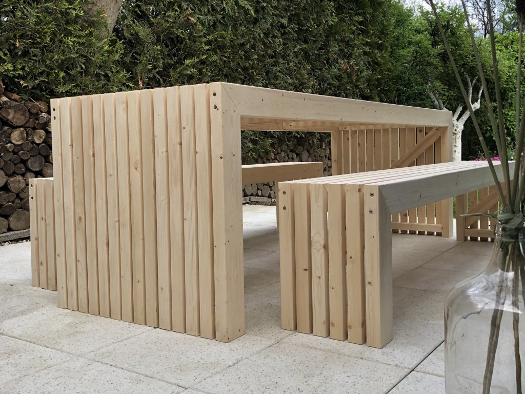 Lamellový zahradní set ve skandinávském stylu, ručně vyrobený z kvalitního sibiřského modřínu nebo severského smrku, poskytuje pohodlné posezení až pro 8 osob a vnáší do zahrady harmonii přírody a elegance. Tento designový set stolu a laviček přináší do vašeho domova jedinečný kousek atmosféry Skandinávie – spojuje nadčasový styl s kvalitou přírodního materiálu, který prostoru dodává hřejivou atmosféru a nádech severské přírody. Ve vhodném prostředí vám vydrží i více než 30 let.